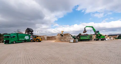 Der moderne Maschinenpark diversen Schredder-/Sieb-/Brecheranlagen, einer Kanalballenpresse und einem Windsichter sichert ein fach- und sachgerechte Abfallbehandlung und Vorbereitung zur Wiederverwendung (Recycling).